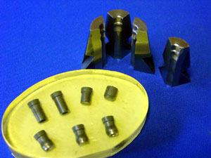 ![]() Distributor Cap Connector - Low carbon steel Innovative design can produce exceptional results. The process uses a "collet type" (opening and closing) insert design and some special machine revisions. (5) die forming machine for this part. Concept is used for forming many "double upset" type parts. |